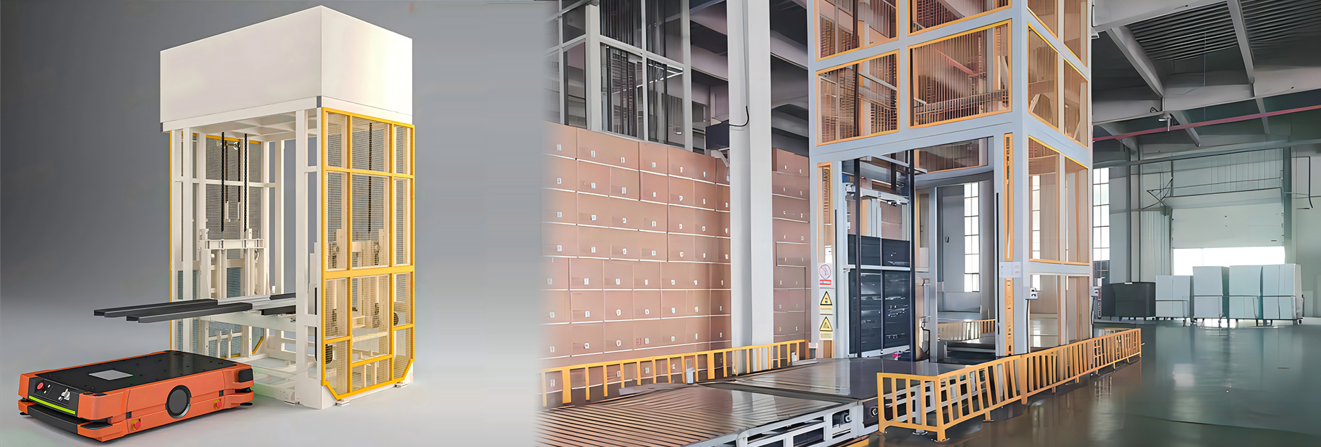 AGV配套轉(zhuǎn)運(yùn)跨樓層輸送提升機(jī)