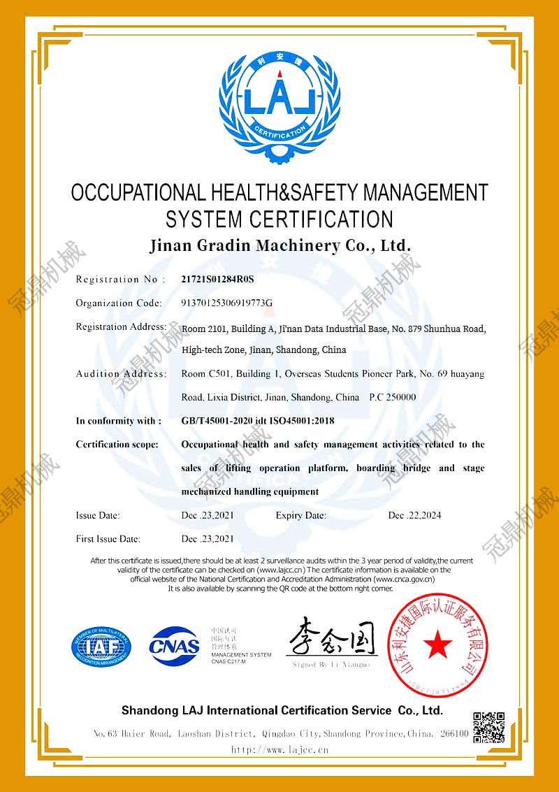 職業(yè)健康與安全管理系統(tǒng)認證