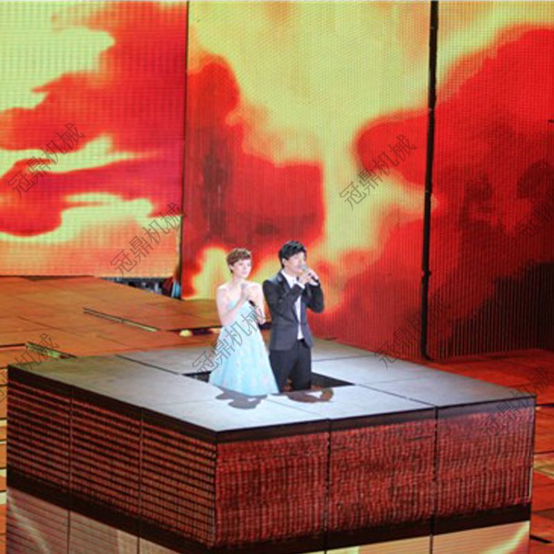 升降舞臺(tái)是舞臺(tái)最常用的產(chǎn)品,主要功能是用于場(chǎng)面轉(zhuǎn)換時(shí),上下移動(dòng)布景和演員。另外,為了突出主要演員,舞臺(tái)會(huì)徐徐升起,演員在舞臺(tái)上翩翩起舞,在舞臺(tái)上制造出高低起伏的畫面,同時(shí)舞臺(tái)升降動(dòng)作的過(guò)程也能增加表演效果