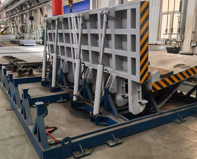 后翻式卸車機是一種高效裝卸設(shè)備,通過夾緊裝置將整車固定在平臺上,啟動傾斜裝置后將卡車整體抬高至45°的傾斜角度,利用貨物重力自然